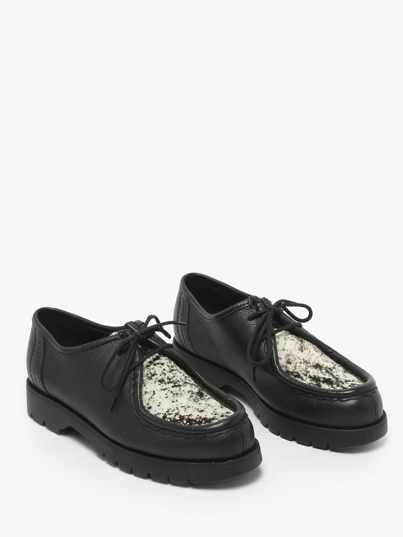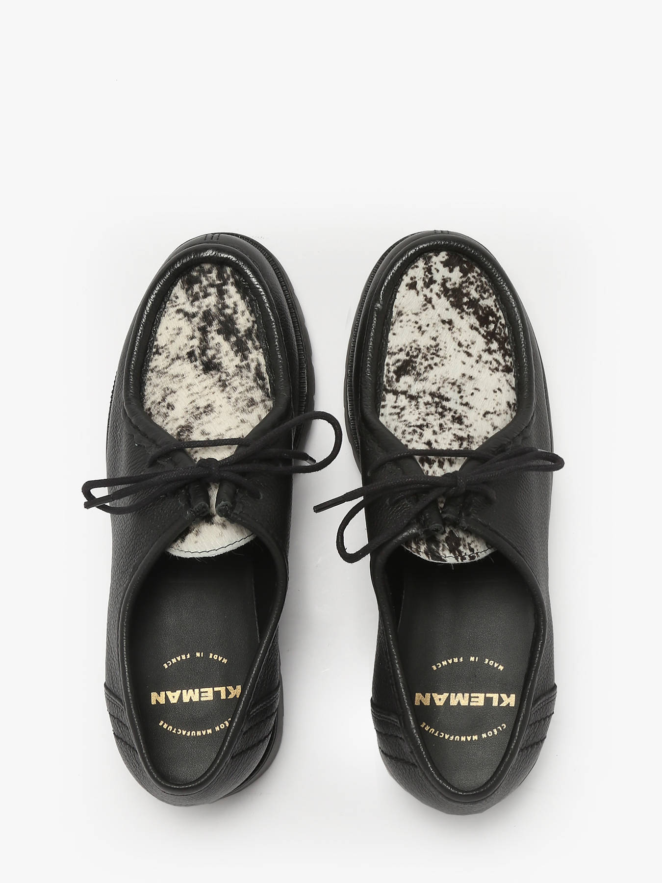 The PADRINI BC derbies by KLEMAN deliver a bold and refined twist on the iconic PADROR design. Crafted in France with a mix of smooth leather and genuine spotted pony hair, they offer a strong personality while maintaining a sleek silhouette. Their cleated rubber sole ensures stability, grip and lasting durability, making them ideal for everyday wear. A mixed leather and textile lining combined with a leather insole provides breathability and long-lasting comfort. The result is a premium shoe that blends style, authenticity and French craftsmanship, perfect for women looking to bring a modern and confident edge to their wardrobe.