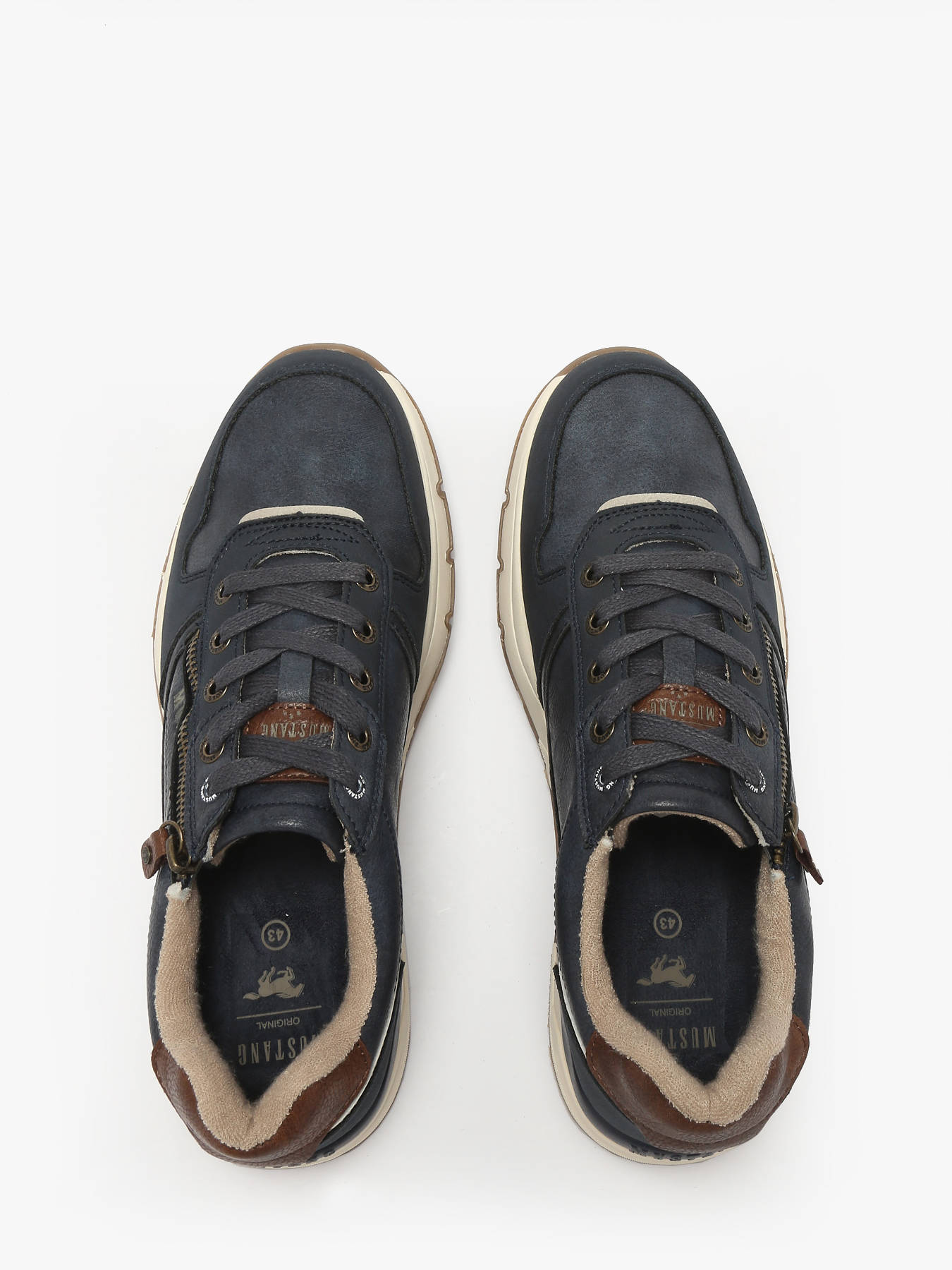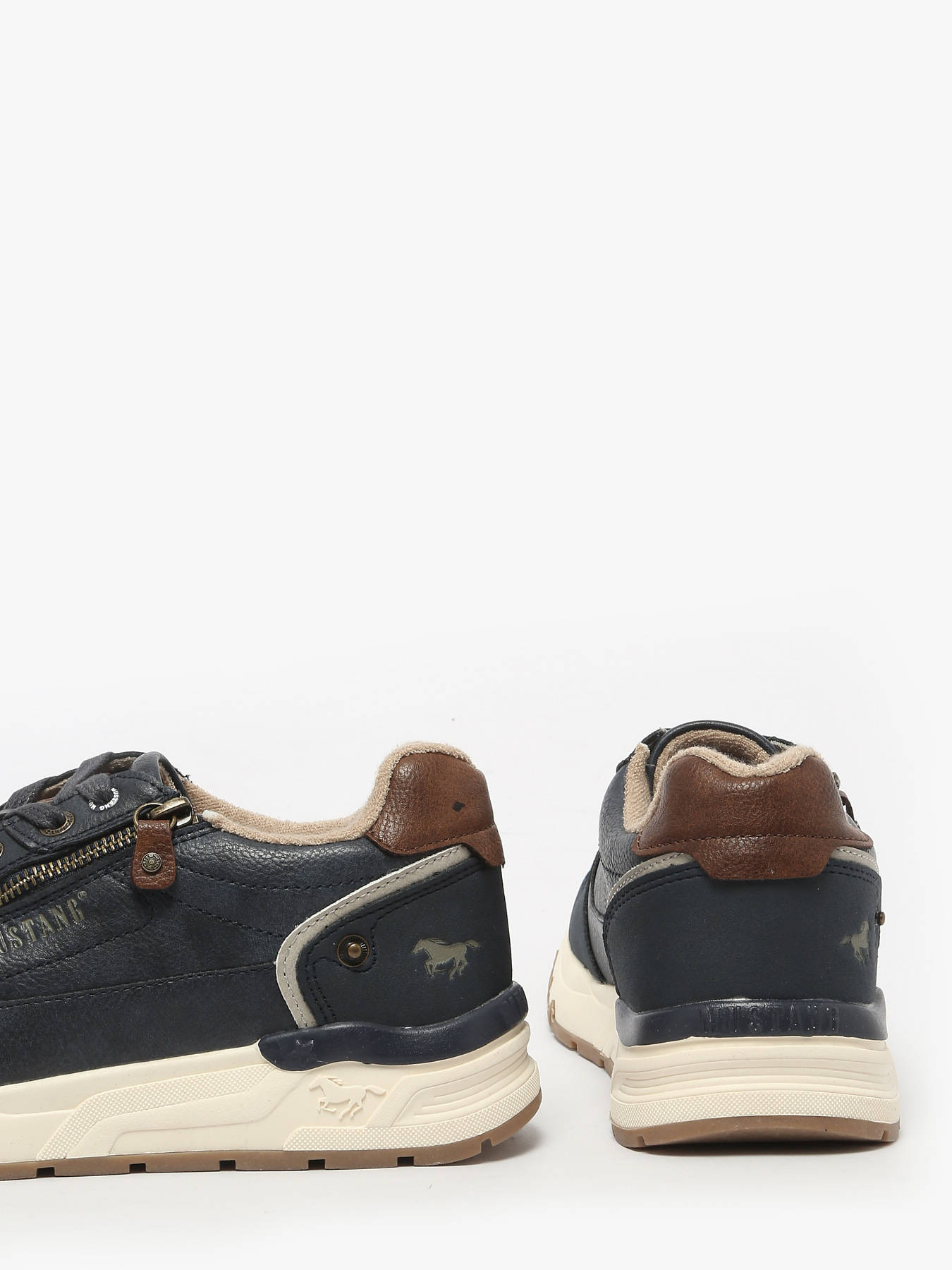 Combine comfort and style with MUSTANG men's sneakers, designed for a modern and dynamic everyday look. The logo, featured on the outsole and upper, adds a distinctive and authentic touch, showcasing your style with every step. The smooth synthetic upper offers lightness and easy maintenance, while the textile lining ensures breathability and all-day comfort. The removable synthetic insole allows for a personalized fit and extra comfort, ideal for extended wear. The combination of laces and a zip closure makes them easy to put on while providing perfect foot support. Versatile and trendy, these MUSTANG men's sneakers pair effortlessly with jeans, casual trousers, or a sporty-chic outfit, becoming an essential piece to complete your looks with style and practicality.